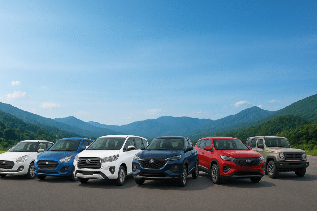 Hire clean, comfortable cars with professional drivers for local or outstation travel.